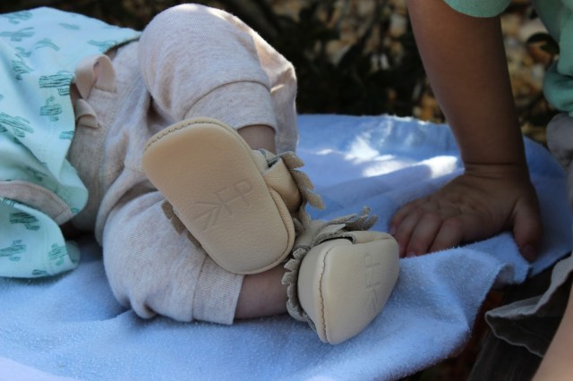 Jacob got his first pair of Freshly Picked Moc’s in Size 0, I mean how adorable are these Birch Moccasins the boys are wearing from the New Classic Collection !