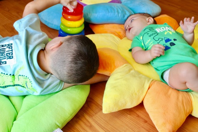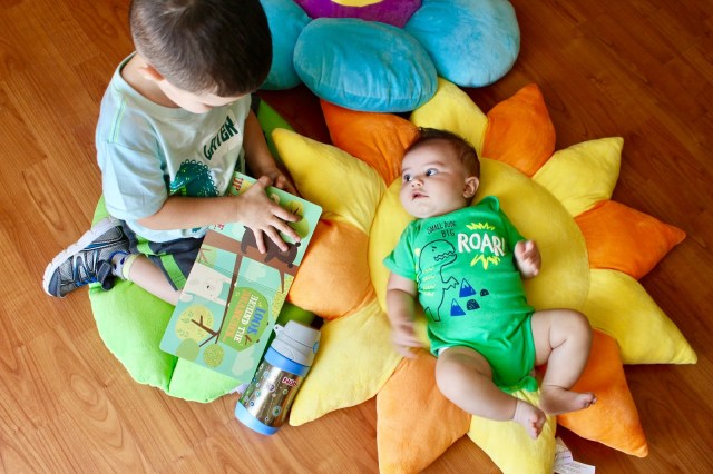 We usually do some kind of activity during the morning before we go outside, at this stage with Jacob becoming more aware of what his brother is doing we love using the Nuby Stack O’ Rings I love the bright vibrant colors and how easy they are to clean! Big brother can show Jacob all the beautiful colors and keep him interested for at least half an hour !