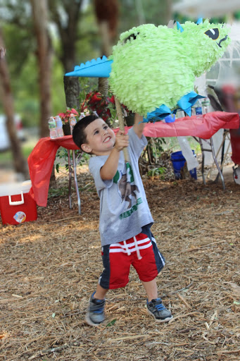 I may still have a variety of table scatter floating around the yard, but at least its pretty ! Nikki the Creator over at The Pretty Paper Giraffe made this ROAR and Dino Mix Table scatter that tied the tables in perfectly, the cupcake toppers with the dinosaurs are also made by her! If you are having a party, baby shower or special event definitely check by her shop!
