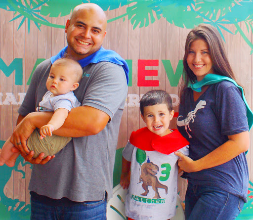 We worked with an amazing company called Revolution46R46 on ETSY make the Custom Dinosaur Party T-Shirt for Matthew as well as Matching Party Favor T-Shirts! How adorable is the Idea of party favor T-Shirt ? When they arrived I was SO impressed on the quality! We had a Bounce House (Per Matthews Request) and a Slip & Slid and these super soft shirts were perfect for the kids too slip into after playing in the water.