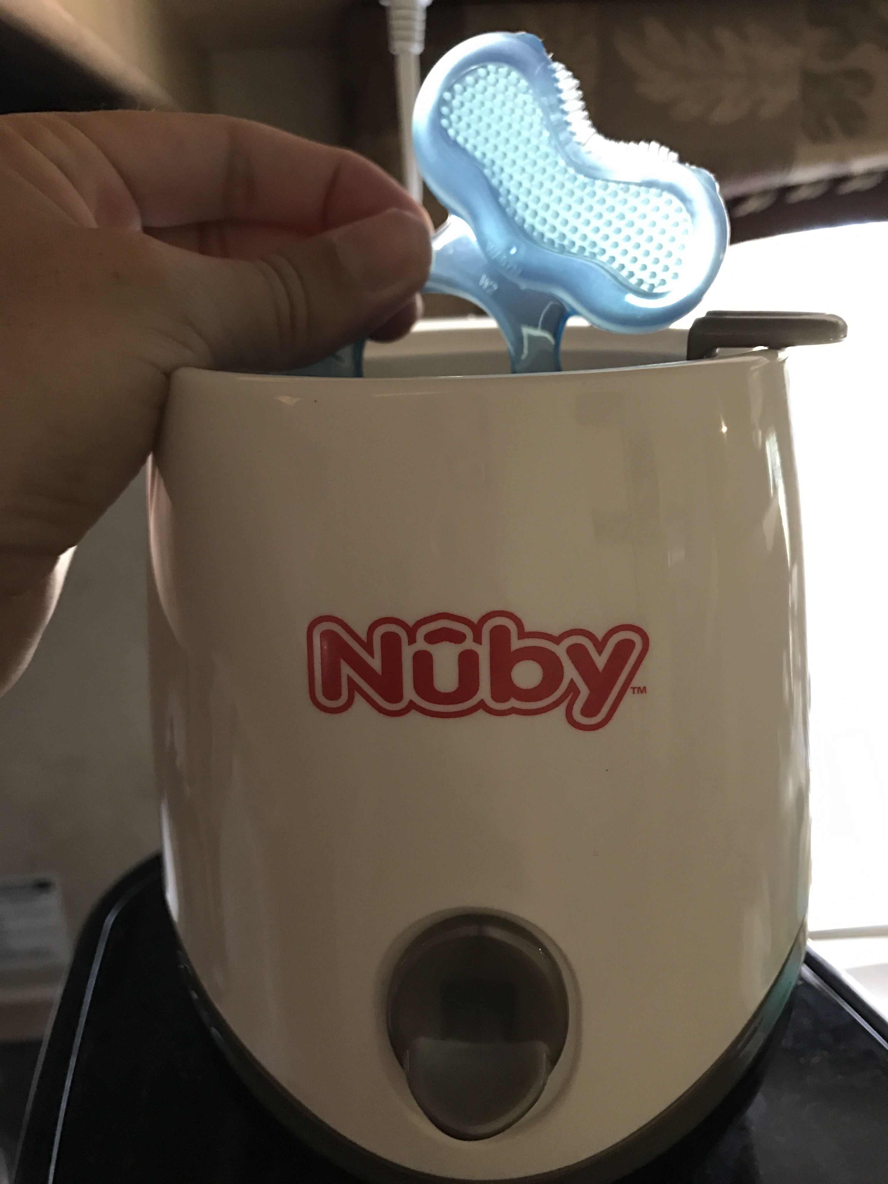 He is also teething so quick easy sterilization of his tethers is a must, this does it so quick and gives me the peace of mind knowing everything is safe a bacteria free. Simply use measuring cup (included) to add water, load the sterilizer and touch the button to start.