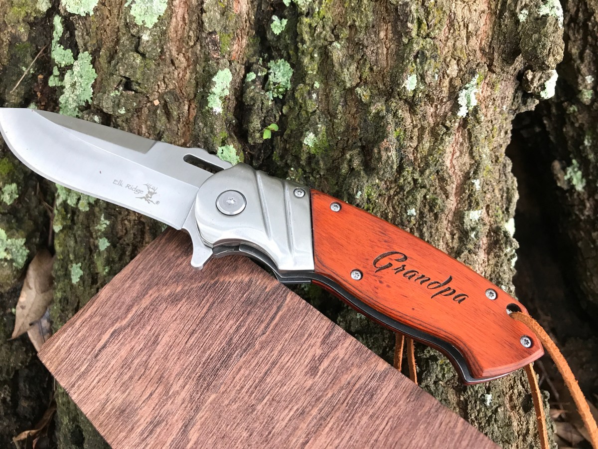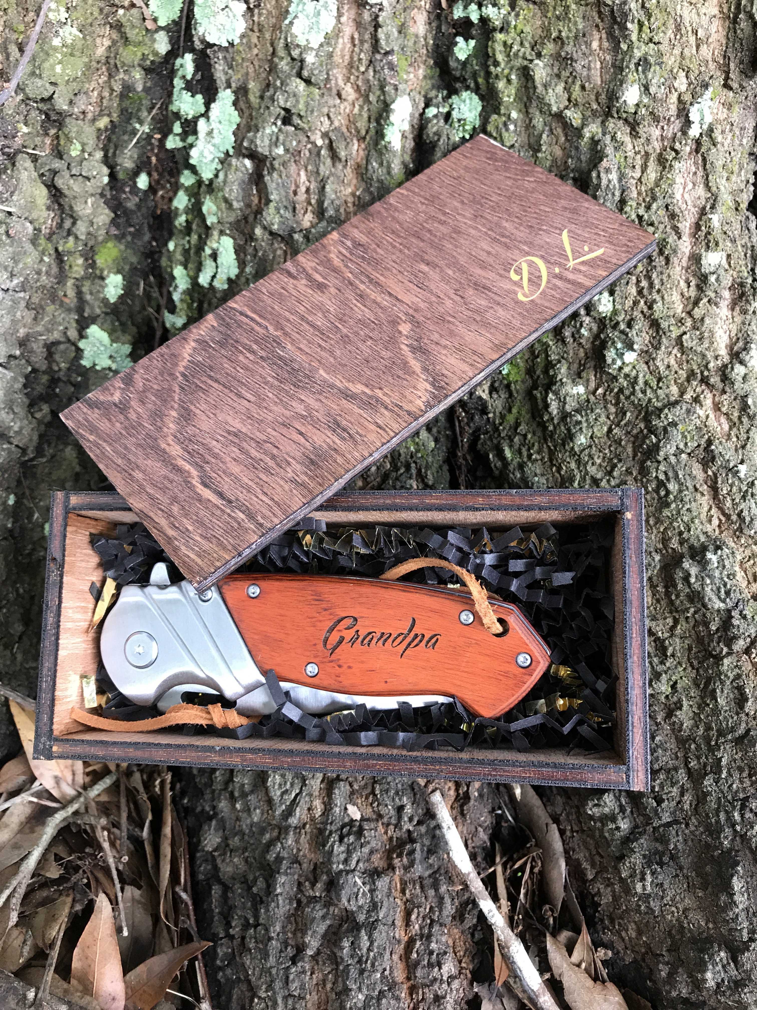 1. This pocket knife is from ThePersonalizedGift’s shop and it was a perfect choice for Grandpa ! The personalized wood gift box adds such a elegance to the presentation and the knife it’s self is a really strong, durable and beautiful!